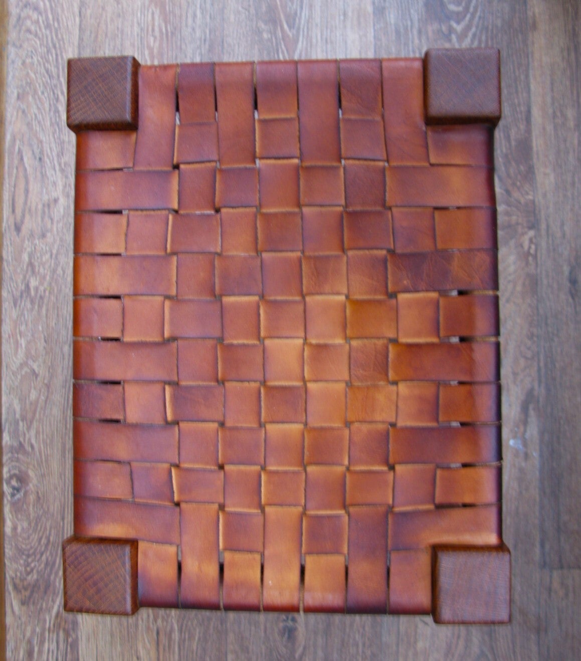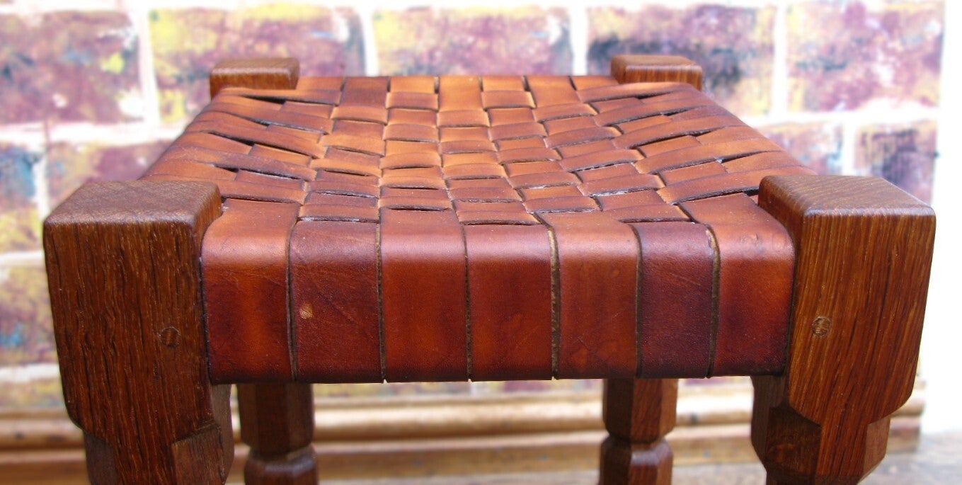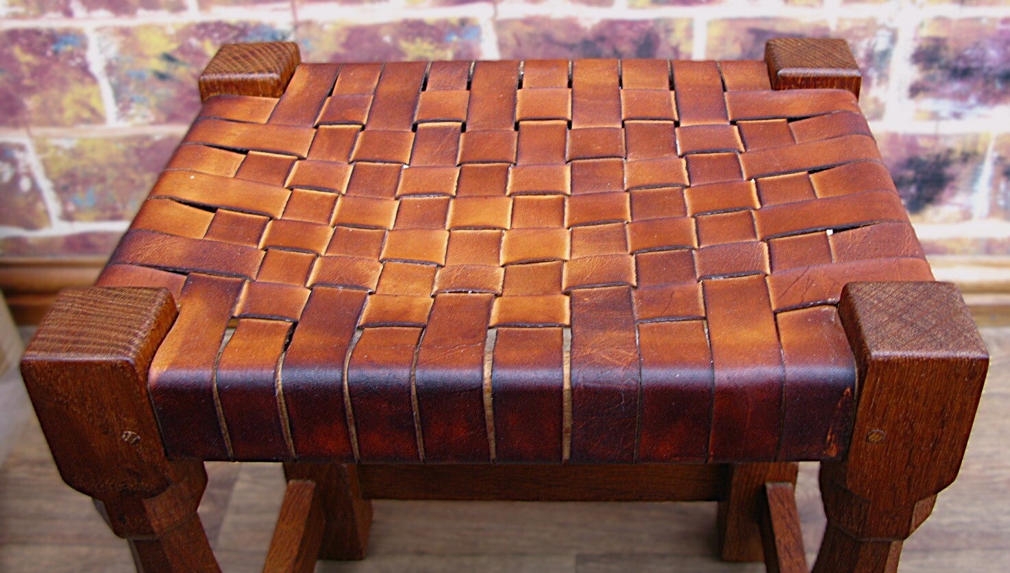 The stool is in excellent original condition. The leather latticework is all original with a dark aged patina. Patches of the lighter butterscotch colour of the seat before patination build up are still evident between some of the straps, which adds to its visual appeal. The straps have suffered no damage, splits, tears, or repairs and are securely held on the oak frame. The seat itself is still nice and tight on the frame with only a little bit of stretching from use. The oak frame is solid and sturdy, no loose joints. There is a 2cm hairline fracture underneath one of the feet (see the last photo for detail) which extends up the side of the block approx 3cm. I have checked the depth into the wood itself and it is no more than 2mm at most. This does not affect the leg's integrity in any way. It's hardly noticeable on the side unless one looks for it. Nothing major, but needs pointing out. The colour is pleasantly medium fumed with an aged patina. Please view all the photographs for condition detail.