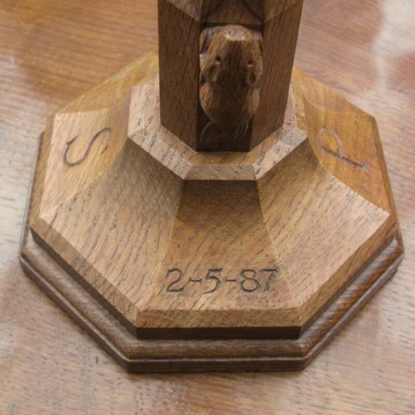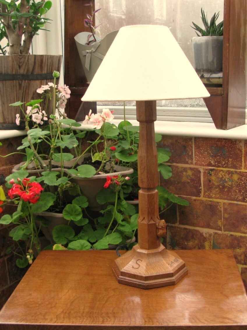 Just the thing to light up those cosy corners on these dark nights, this Yorkshire Oak table lamp was hand-made by ex-"Mouseman" trained craftsman, Colin "Beaverman" Almack.